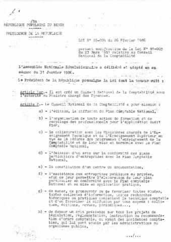 Portant modification de la Loi N°81-003 du 23 Mars 1981 relative au Conseil National de la Comptabilité.