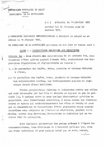 portant loi de finances pour la Gestion 1985