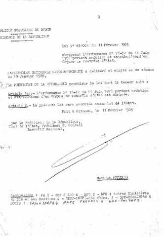 abrogeant l'Ordonnance N° 76-32 du 11 Juin. 1976 portant création et attributions d'un. Organe de contrôle d'Etat.
