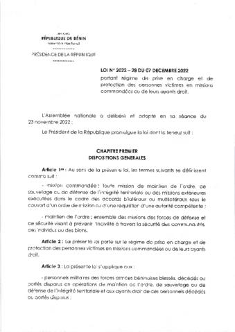 LOI N°2022-28 du 07 Décembre 2022