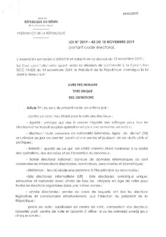 LOI N°2019-43 du 15 Novembre 2019