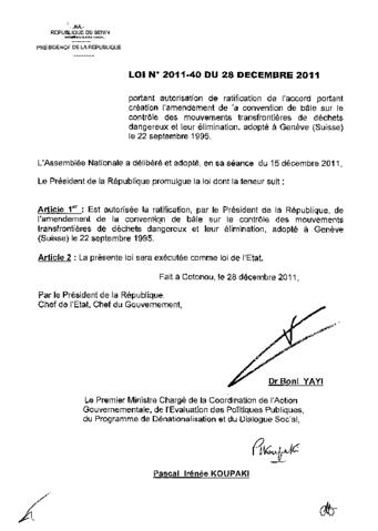 portant autorisation de ratification de l’amendement à la Convention de Bâle sur le contrôle des mouvements transfrontières de déchets dangereux et l...