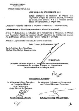LOI N°2012-38 DU 27 DECEMBRE 2012
