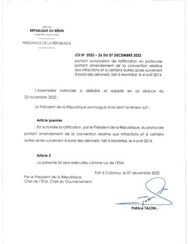 LOI N°2022-26 DU 07 DECEMBRE 2022