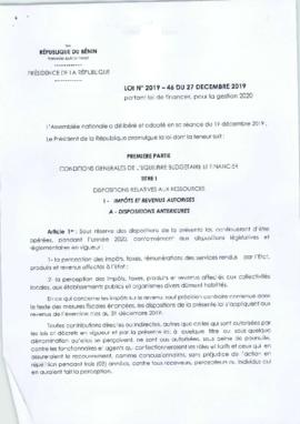LOI N°2019-20 du 27 Décembre 2019