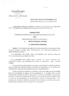 LOI N°2017-40 DU 29 DECEMBRE 2017