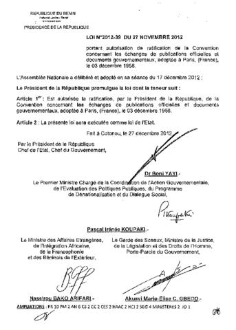 LOI N°2012-39 DU 27 NOVEMBRE 2012