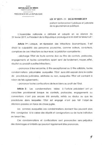 LOI N°2019-11 du 25 Février 20219