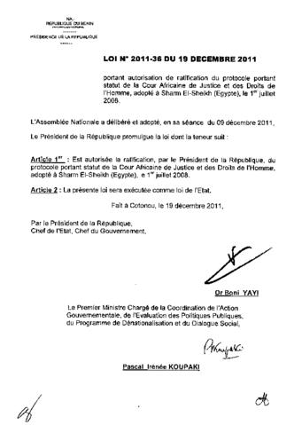 Loi N° 2011-036
