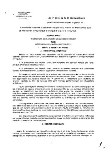 LOI N°2010-46 DU 31 DECEMBRE 2010