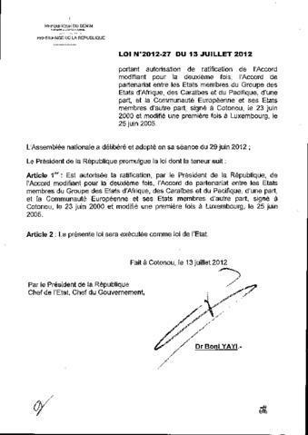 LOI N°2012-27 DU 13 JUILLET 2012