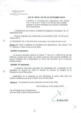 LOI N°2010-36 DU 25 OCTOBRE 2010