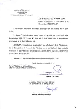 LOI N°2017-23 DU 10 AOUT 2017