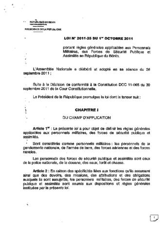 LOI N°2011-25 DU 1er OCTOBRE 2011