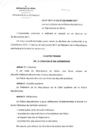 portant création de la police républicaine en République du Bénin
