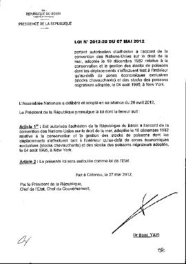 portant autorisation d'adhésion à l'accord de la convention des Nations-Unies sur le droit de la mer, adoptée le 10 décembre 1982 relative à la conser...