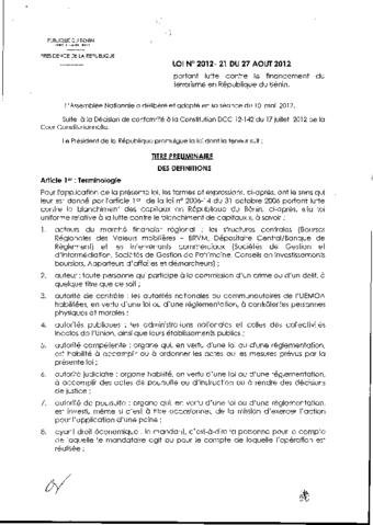 LOI N°2012-21 DU 27 AOÛT 2012