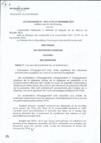 LOI N°2013-14 DU 27 SEPTEMBRE 2013