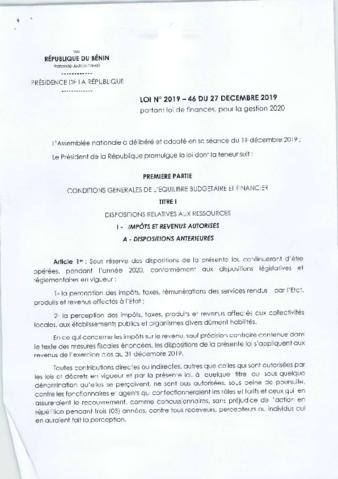 LOI N°2019-46 DU 27 DECEMBRE 2019