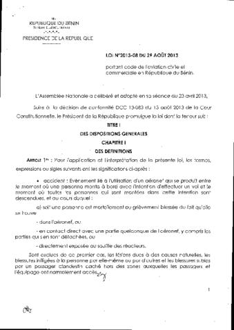 portant code de l'aviation civile et commerciale en République du Bénin.