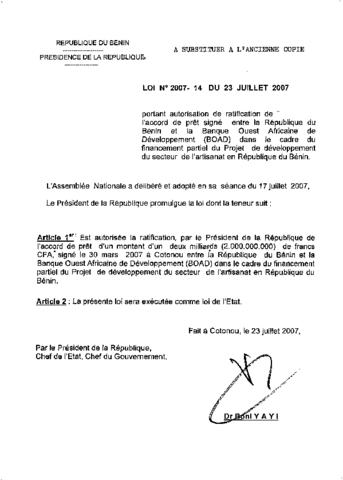 LOI N°2007-14 du 23 Juillet 2007