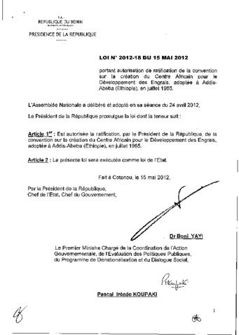 LOI N°2012-18 DU 15 MAI 2012