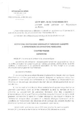 portant code pétrolier en République du Bénin
