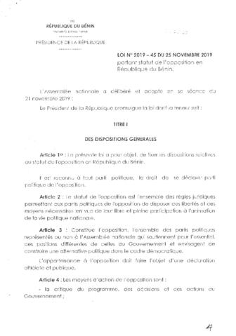 LOI N°2019-45 DU 25 NOVEMBRE 2019