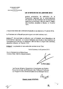 LOI N°2012-03 DU 26 JANVIER 2012