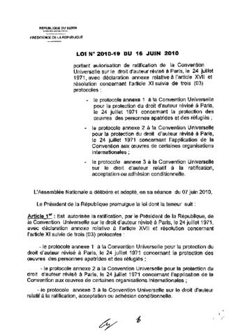 Portant autorisation de ratification de la Convention Universelle sur le droit d'auteur révisé à Paris, le 24 juillet 1971, avec déclaration annexe r...
