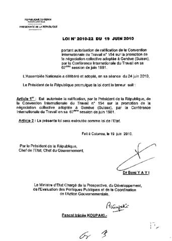 Portant autorisation de ratification de la Convention Internationale du Travail n° 154 sur la promotion de la négociation collective adoptée à Genève...