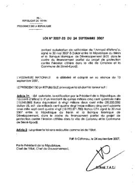 LOI N°2007-23 DU 24 SEPTEMBRE 2007