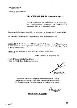 LOI N°2012-08 DU 26 JANVIER 2012