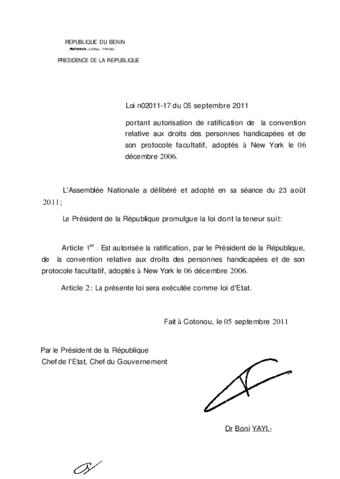 portant autorisation de ratification de la convention relative aux droits des personnes handicapées et de son protocole facultatif, adoptées à New Yor...