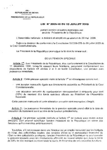 LOI N°2009-18 DU 15 JUILLET 2009