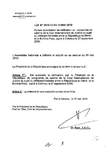 portant autorisation de ratification du compromis de saisine de la cour Internationale de justice au sujet du différent frontalier entre la République...