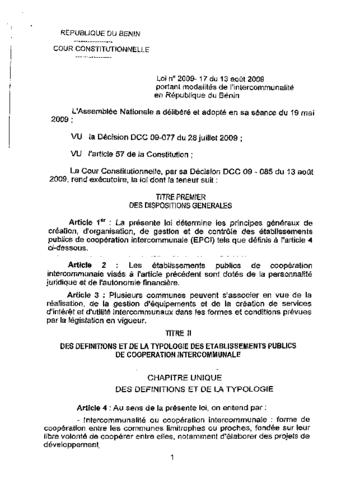 LOI N°2009-17 DU 13 AOÛT 2008