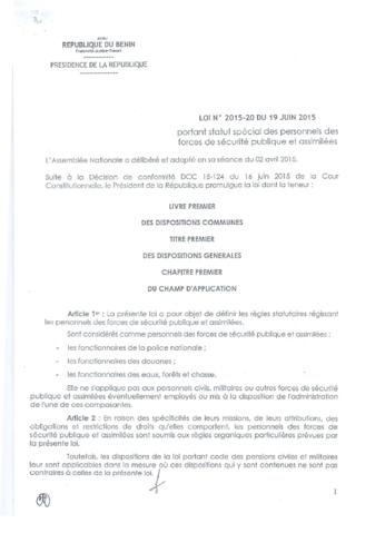 portant statut spécial des personnes des forces de sécurité publique et assimilées