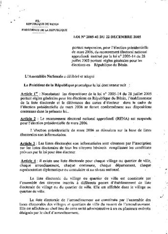 LOI N°2005-41 DU 22 DECEMBRE 2005