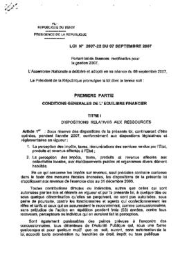 LOI N°2007-22 DU 07 SEPTEMBRE 2007