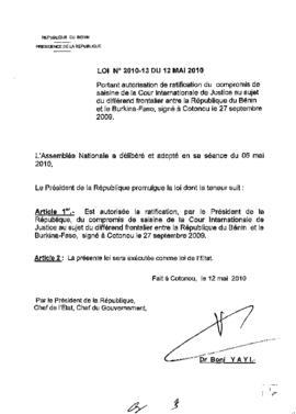 portant autorisation de ratification du compromis de saisine de la Cour internationale de justice au sujet du différend frontalier entre la République...