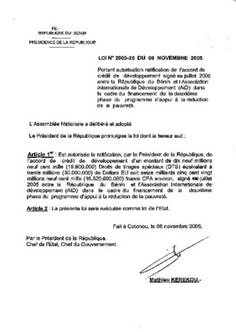 LOI N°2005-35 DU 08 NOVEMBRE 2005