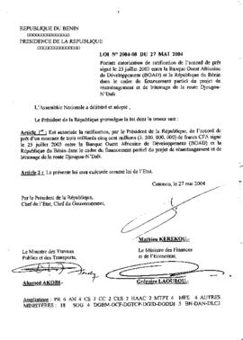 portant autorisation de ratification de l'accord de prêt signé le 25 Juillet 2000 entre la Banque Ouest Africaine Développement (BOAD) et la Républiqu...