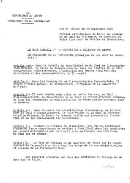 portant attributions du Maire de Commune et du Chef de village ou du quartier de ville élus pour la période de transition.