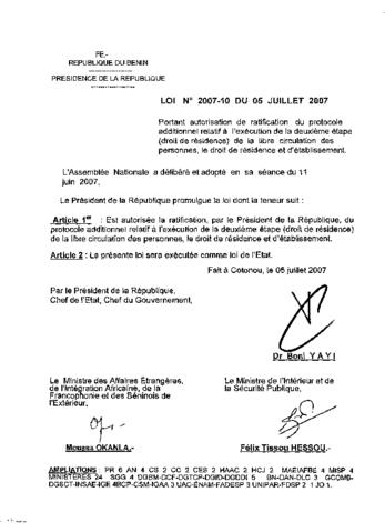 portant autorisation de ratification du protocole additionnel relatif à l’exécution de la deuxième étape (droit de résidence) de la libre circulation...