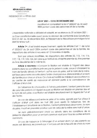 LOI N°2021-13 DU 20 DECEMBRE 2021