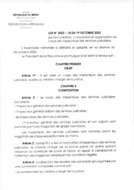 LOI N°2022-18 DU 19 OCTOBRE2022
