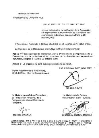 portant autorisation de ratification de la convention sur la protection et la promotion de la diversité des expressions culturelles, adoptée à paris l...