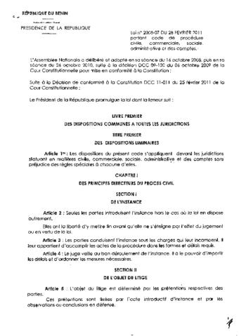 portant code de procédure civile, commerciale, sociale et administrative en République du Bénin.