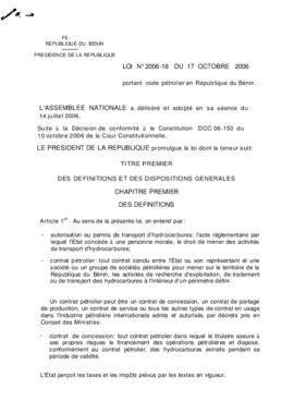 LOI N°2006-18 DU 17 OCTOBRE 2006